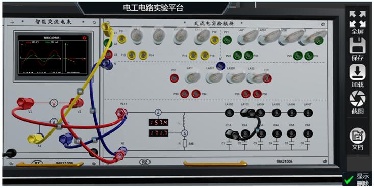 2、三相交流電在線實驗操作界面-功率因素調整實驗(3D界面)