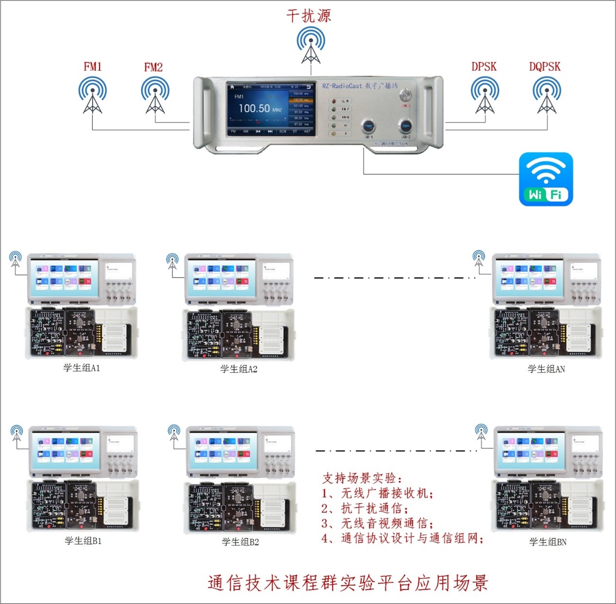 3、平臺內(nèi)線上板卡內(nèi)單元電路級聯(lián)能構(gòu)成:無線模擬通信系統(tǒng)、無線數(shù)字音視頻通信系統(tǒng);