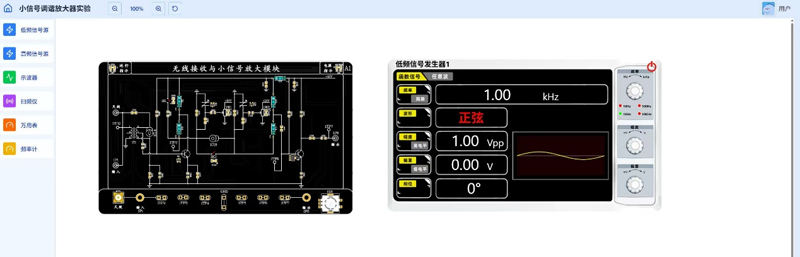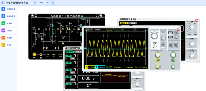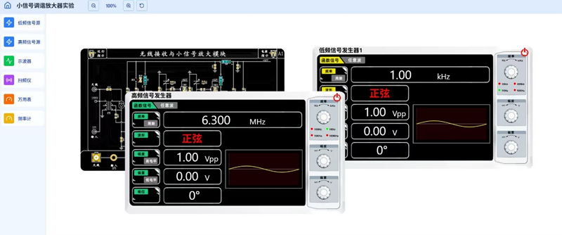 通信技術(shù)子平臺(tái),支持高頻電子線路、嵌入式技術(shù)等課程實(shí)驗(yàn),內(nèi)嵌:函數(shù)信號(hào)源、三用表、2通道示波器、掃頻儀、頻率計(jì)、毫伏表等測(cè)試儀;