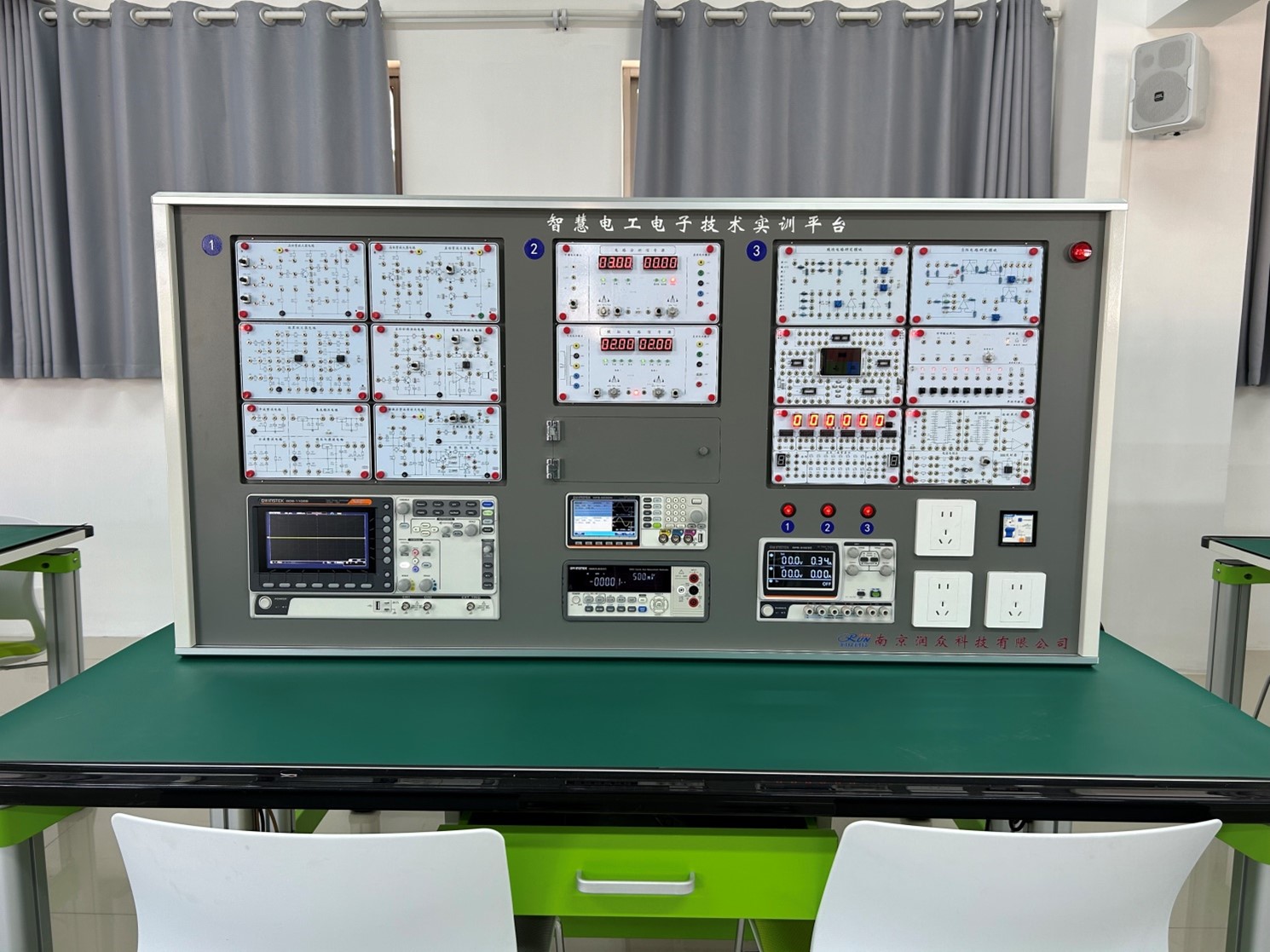 智慧電工電子技術(shù)實(shí)訓(xùn)平臺,涵蓋了數(shù)電、模電、電路分析實(shí)驗(yàn)所需模塊,實(shí)驗(yàn)室能滿足數(shù)字電路、模擬電路、電路分析三門課程的實(shí)驗(yàn)教學(xué)。