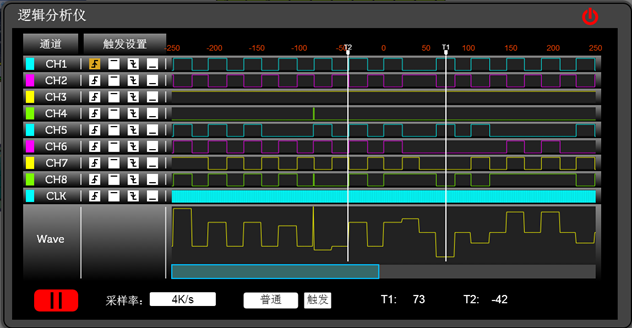 (3)實(shí)驗(yàn)平臺(tái)實(shí)時(shí)返回開發(fā)軟件運(yùn)行結(jié)果:邏輯信號(hào)、模擬信號(hào);