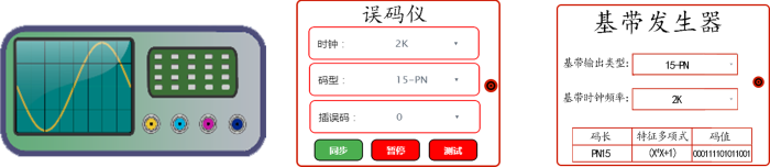 實(shí)驗(yàn)提供的儀器儀表有:示波器、誤碼儀、基帶發(fā)生器等。